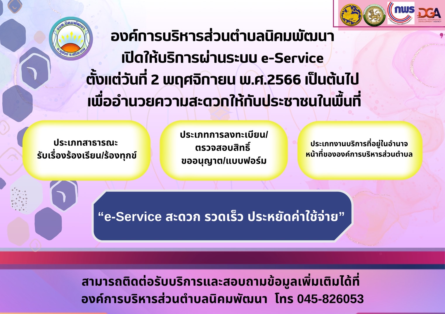 บริการ สะดวก รวดเร็ว เมื่อแจ้งเรื่องผ่าน e-Service แจ้งเรื่องไปถึงผู้ดูเเลโดยตรง